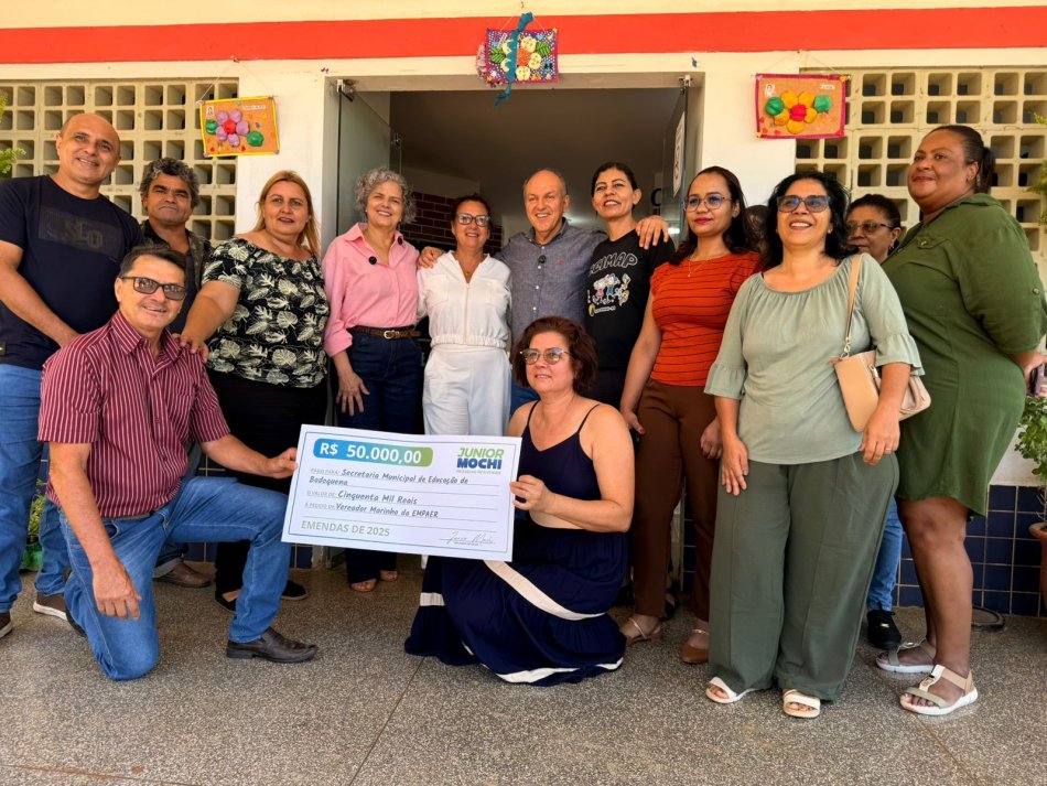 A primeira parada foi no Centro de Educação Infantil Maria Madalena Farias Pina (CEI MAP), onde o deputado oficializou a entrega simbólica de R$ 50 mil. De acordo com a direção da unidade, o valor será utilizado para a compra de equipamentos de ar-condicionado, garantindo mais conforto e qualidade no ambiente escolar para alunos e profissionais.