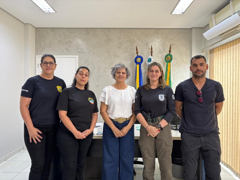 A prefeita Girleide Rovari recebeu nesta sexta-feira (17) a equipe da Delegacia Especializada de Repressão aos Crimes Ambientais e de Atendimento ao Turista (DECAT), de Campo Grande.
